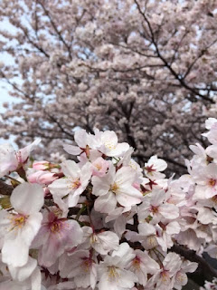 Today is forecasted to be only the sunny day of this week, and probably the last day to enjoy viewing the flowers before they fall. The cherry blossoms look best with blue skies in the background! I'm glad I was able to capture the moment though they started to fall already. Seasons come and go... I love the pink carpet that only appears this week in the whole year.